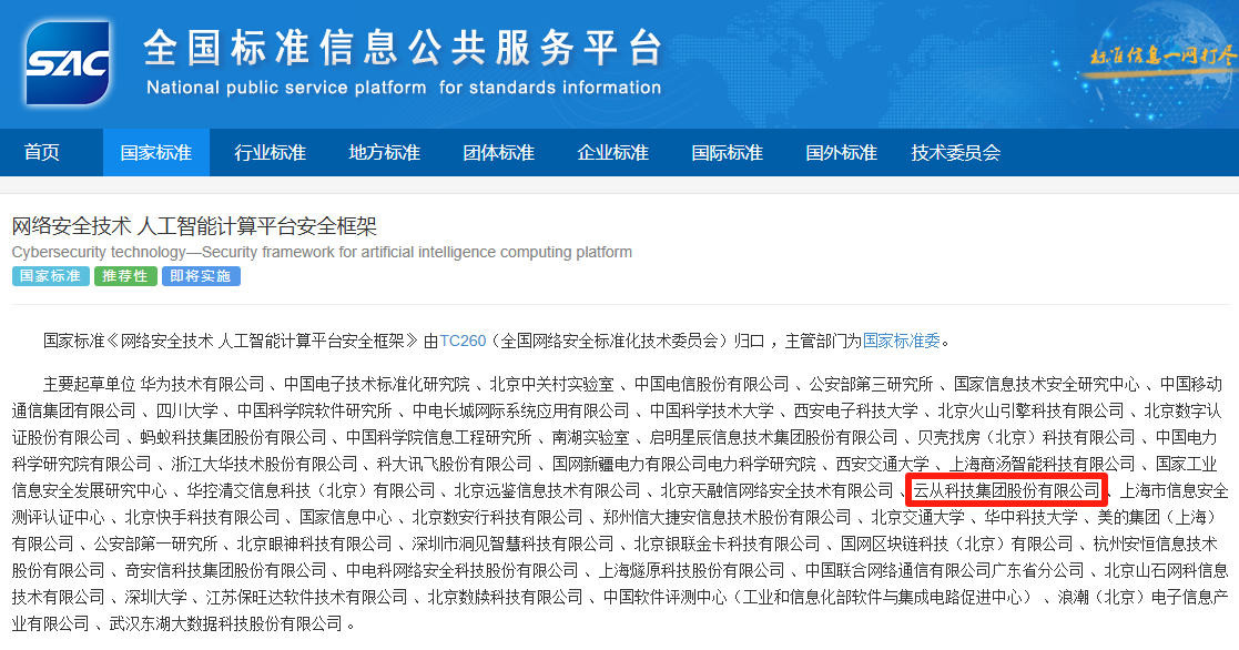近日,國家標(biāo)準GB/T 45958-2025《網(wǎng)絡(luò)安全技術(shù) 人工智能計算平臺安全框架》正式發(fā)布。該標(biāo)準由全國網(wǎng)絡(luò)安全標(biāo)準化技術(shù)委員會歸口管理,華為技術(shù)有限公司牽頭,云從科技作為核心起草單位之一,深度參與了標(biāo)準制定工作。 這項將于2026年2月1日正式實施的國家標(biāo)準,為人工智能計算平臺建立了系統(tǒng)化的安全框架,規(guī)定了安全功能、安全管理和角色安全職責(zé),將有效應(yīng)對硬件漏洞、訓(xùn)練數(shù)據(jù)泄露、對抗樣本攻擊等新型安全威脅。